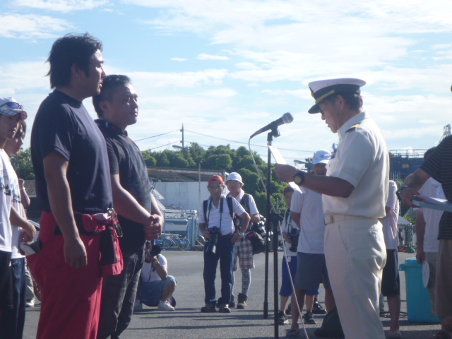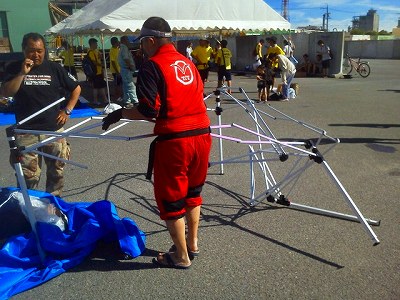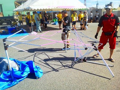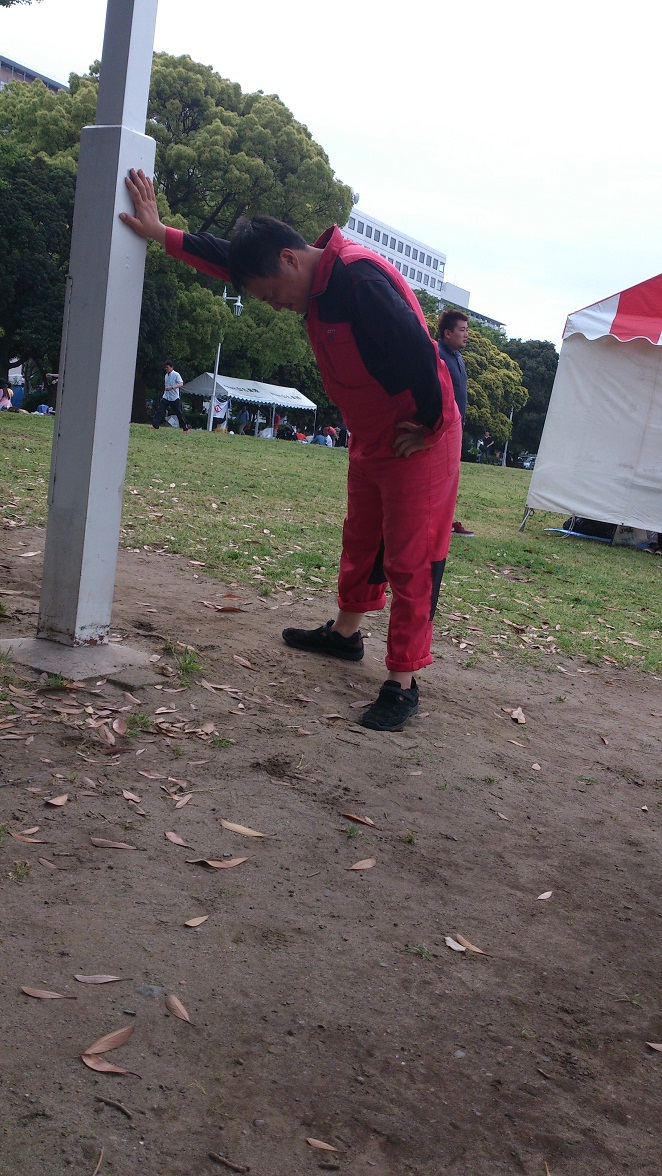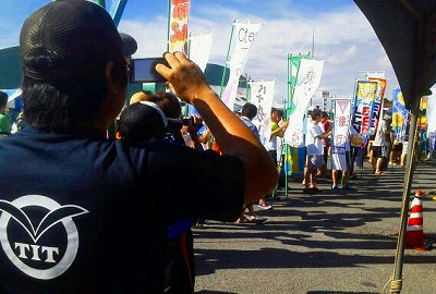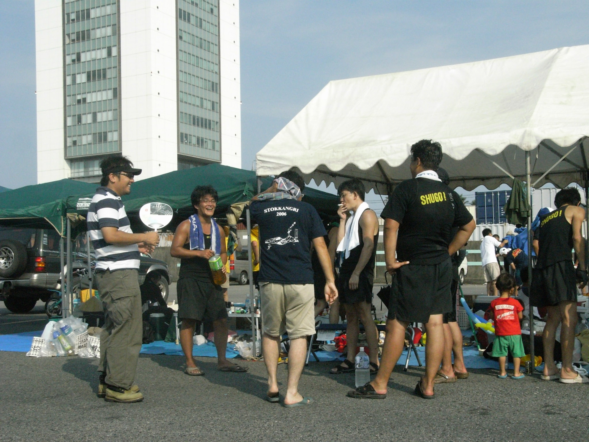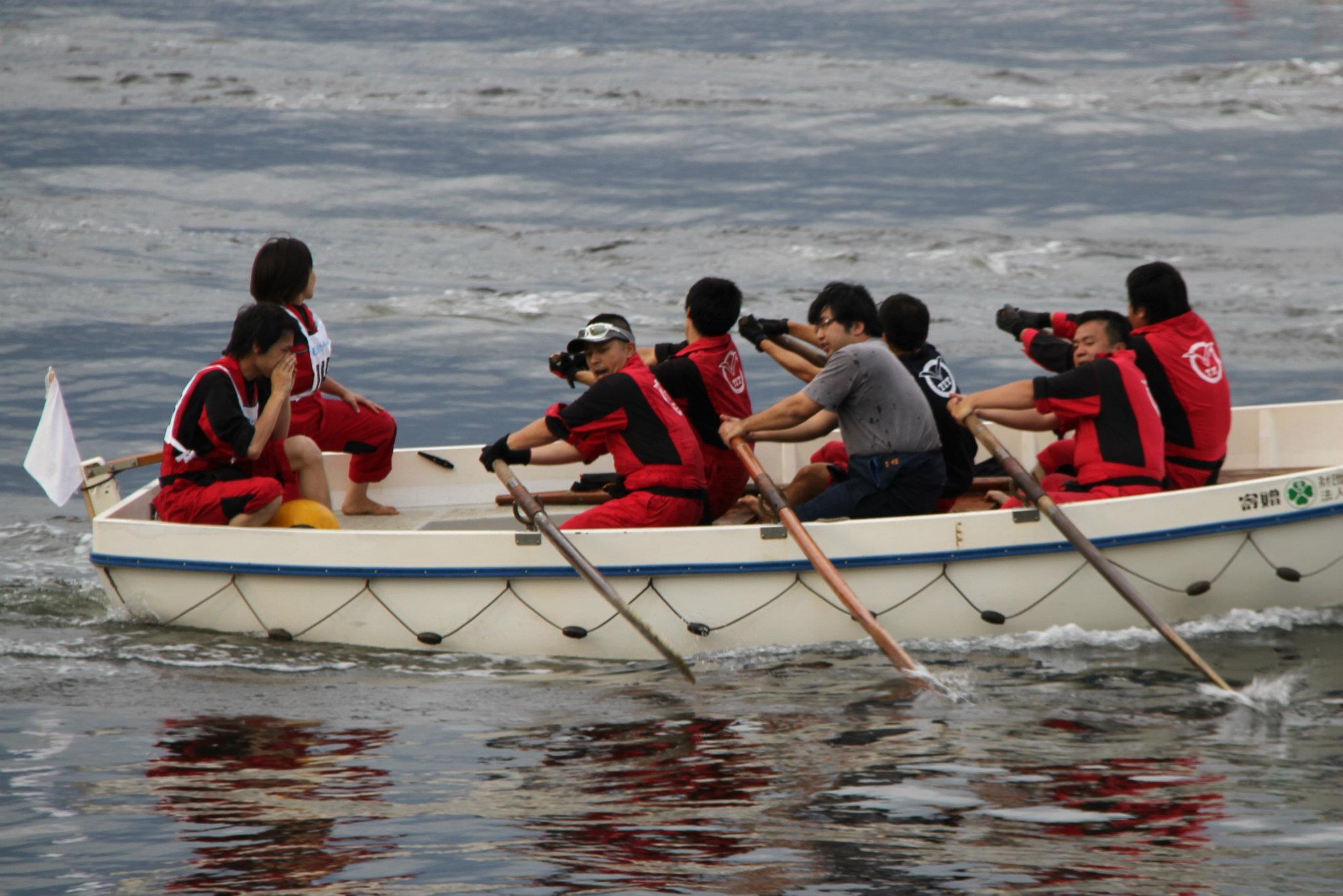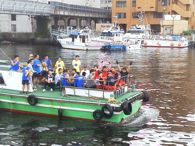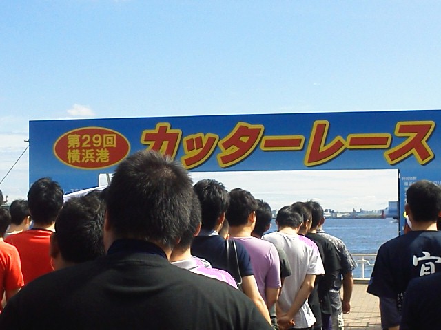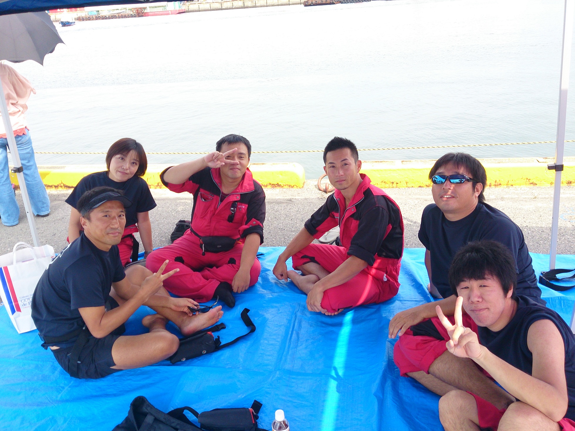 タープ内で時間調整。例年進行が遅れるので今回もそうだと思っていたが、スピーカーよりチーム名を呼ぶアナウンス。珍しく今回は進行が早いらしい。心の準備が出来ぬまま赤ツナギをまとい乗船所受付に急いだ。