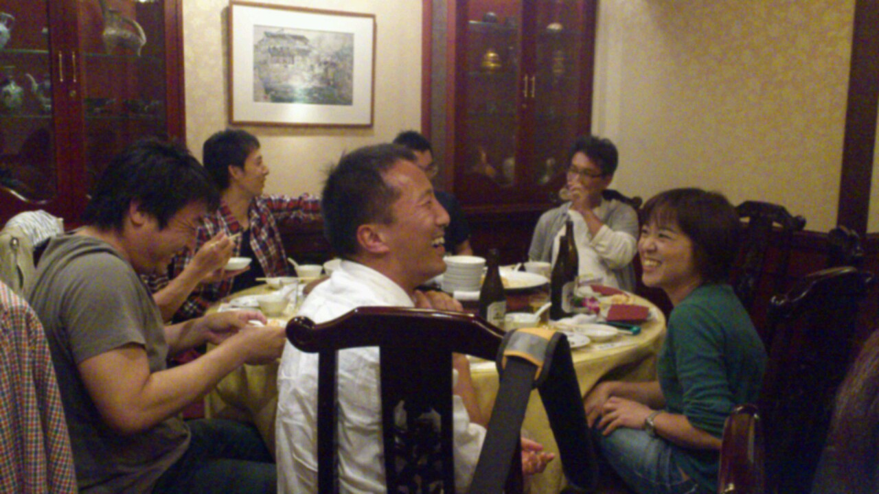 中華喰らいながら映像に見入る人々(当然反省は無い)