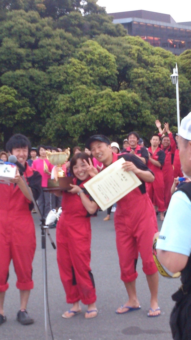 女子決勝が始まった、うちの艇長が艇長・嵐が6番として乗るこげポテが見事優勝!終始リードして、見ていて危なげない完全勝利だった。