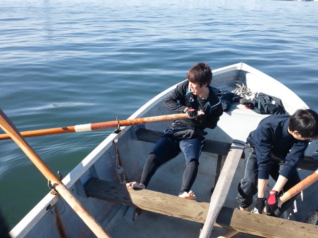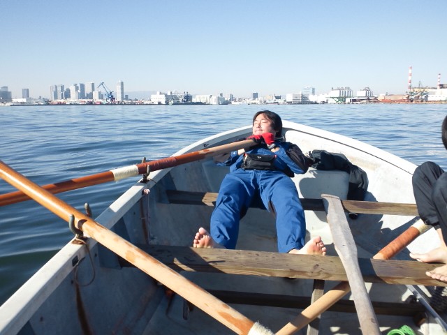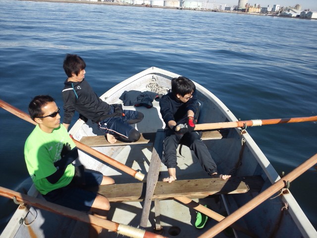 しばらくは4人で合わせて漕いで、櫂の感触を確かめて。