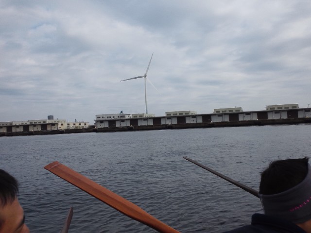 しばらく風車前をぐるぐる漕いだ後、休憩していたら東水堤を超えて、みなとみらい側に流される。