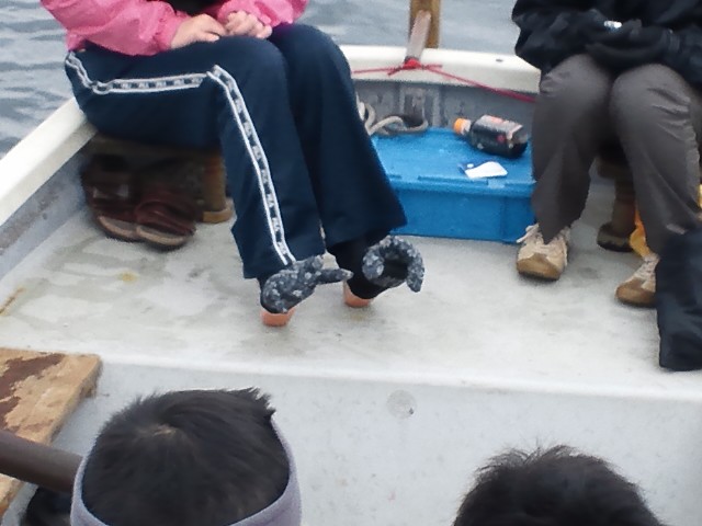 あと、寒いからって、手袋を足に履くのは・・・