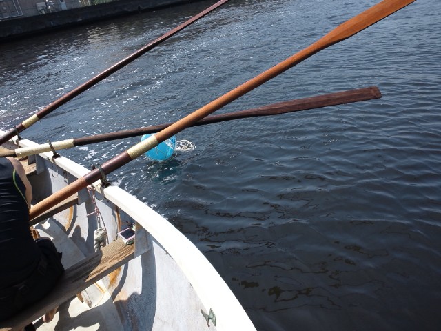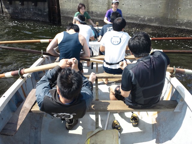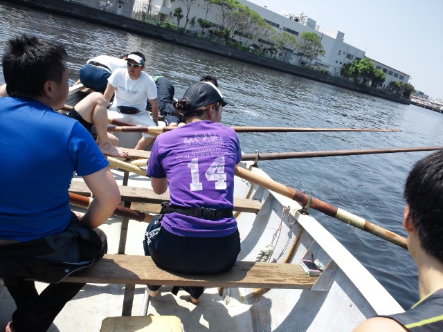 そして、いざ艇に乗り込む。ムッムッなんか居心地が悪い、足場と櫂がスベる。