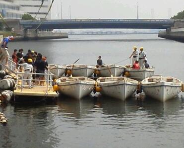 日本丸や少年団の皆さんが、艇の準備をして下さってます。