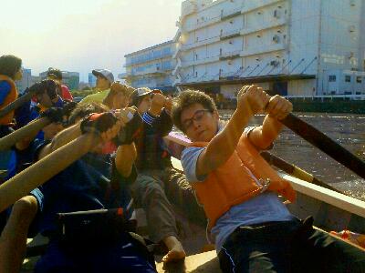 艇に乗り込み出艇準備を進めていると、緊張していた様子をポンツーンに居る王者チャレ櫂のHさんに目撃される。「緊張しているよ!楽にいきな!」と言われ、硬くなった顔をマッサージして「決勝で対戦したいッス!」と返す。よーし、やるか!気合入った!!