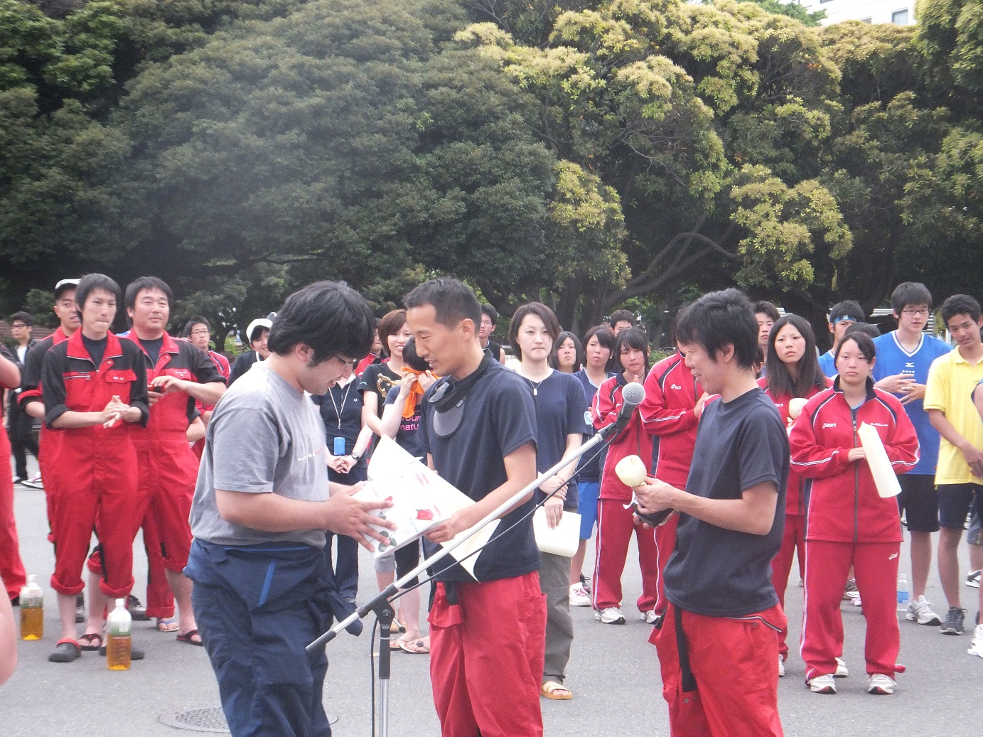 女子優勝艇「こげポテ」に赤つなぎが一人・・・