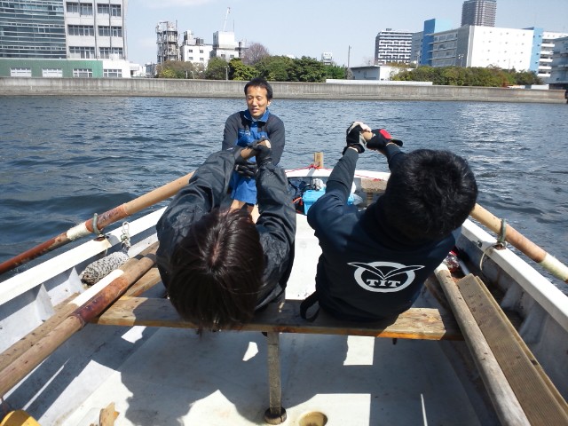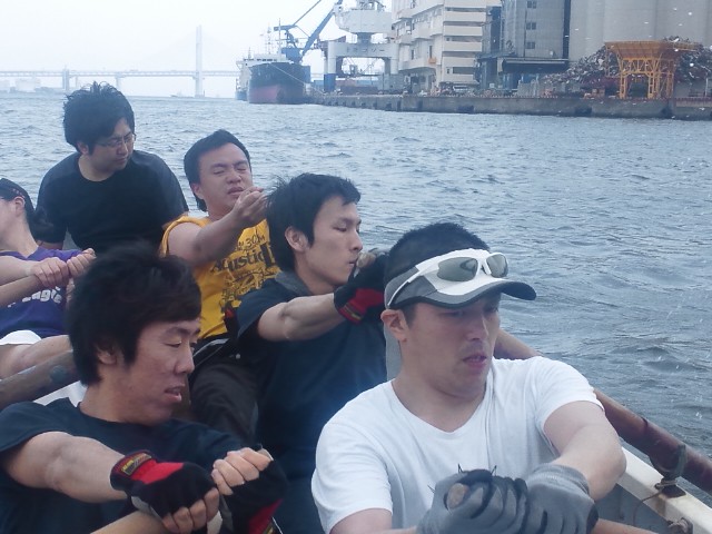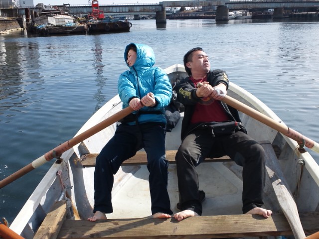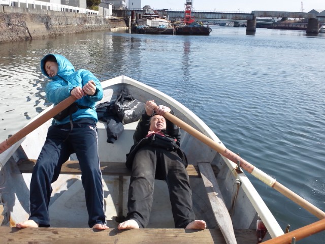 で、訳もわからず連れてこられた新入社員2人も漕がされます。