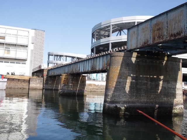 この運河筋には、たくさんの工場や倉庫があって、鉄道の引き込み線も多くあります。