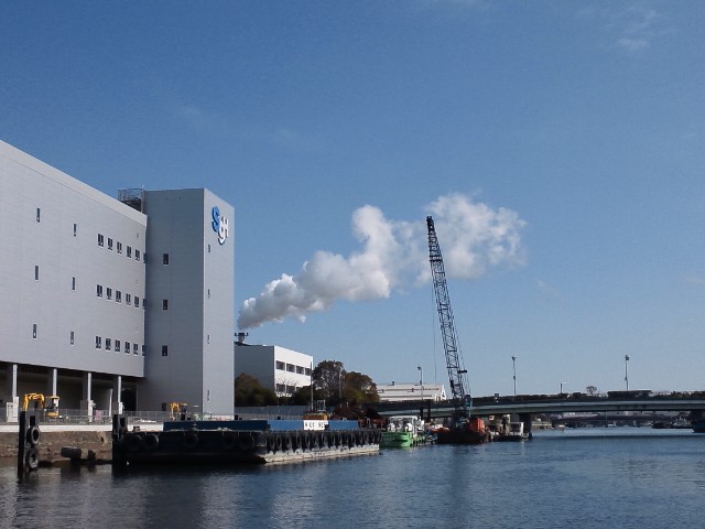 北寄りの風がそこそこ吹いて、煙突の煙(本当は水蒸気だそうです)も横に流れている・・・