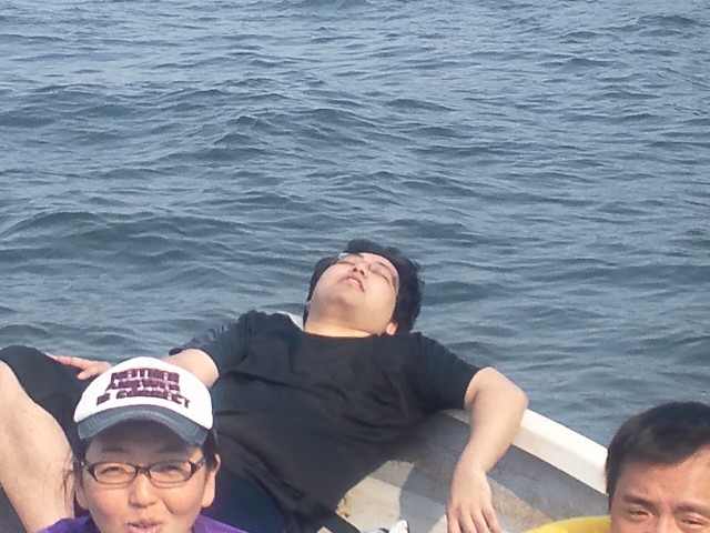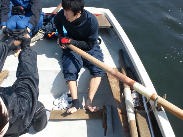 狭所通過の為に櫂を流す時は、後ろの人の股間を枕にすると、楽だよ。