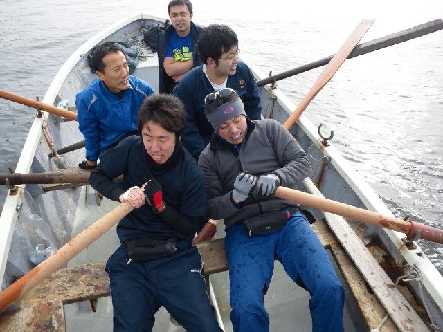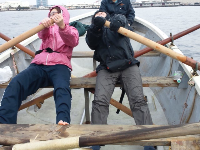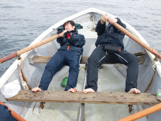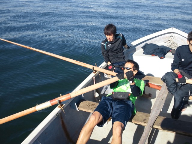 しばらくは4人で合わせて漕いで、櫂の感触を確かめて。