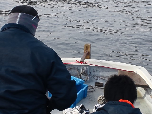 本日、訳あって1番がサンクス乗船(初の試み)の為、2号の角から艇を下ろして、サンクスまでお迎えに。
