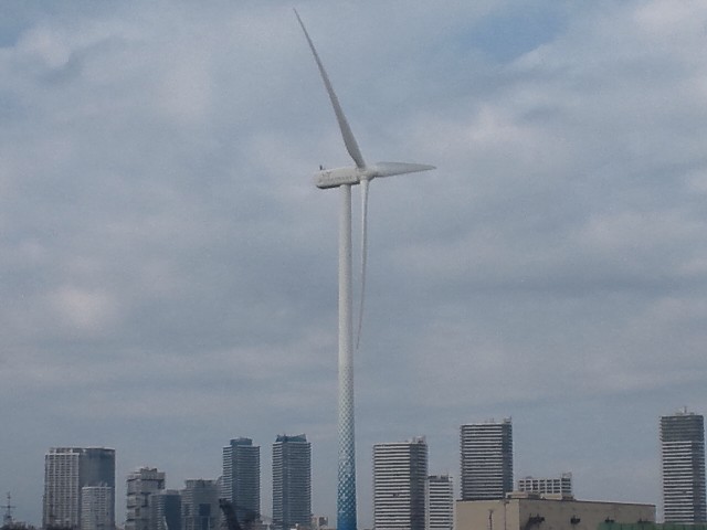 しばらく風車前をぐるぐる漕いだ後、休憩していたら東水堤を超えて、みなとみらい側に流される。