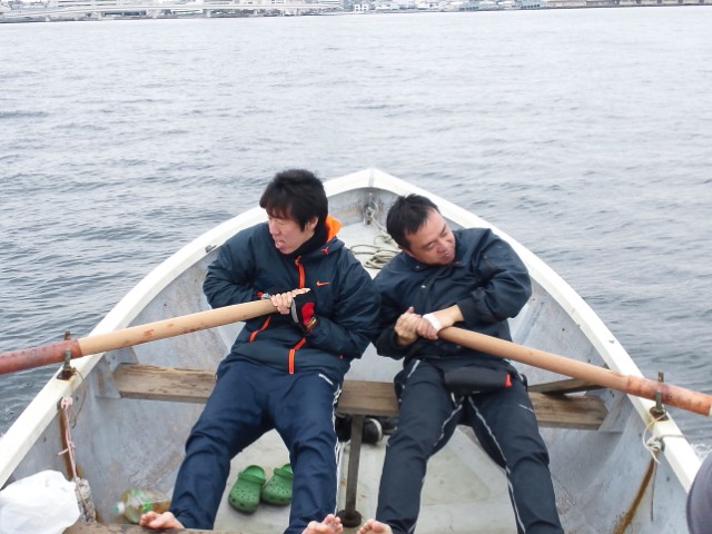 AGHを装着して、6人漕ぎで最近流行の(?)スポット、大黒信号下へ向かう。